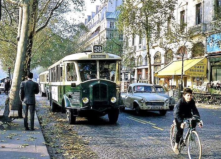 Se trata de un autobús Renault construido por la prestigiosa firma automovilística francesa en el año 1934. La amplitud de esta serie de autobuses urbanos, que vino a sumarse a modelos anteriores que venían protagonizando el transporte público en la capital parisina desde principios del siglo XX, hizo convertirla en uno de los modelos más característicos del transporte de la ciudad. Tanto es así que no hay fotografía o película cinematográfica, rodada en exteriores de París, que no cuente con la presencia de algún ejemplar de este emblemática serie de vehículos. Presencia que se extendió desde la década de 1930 hasta la de 1970. No en vano, y dada su inigualable representatividad histórica, el modelo en cuestión ha sido reproducido en miniatura por diferentes casas modelísticas europeas.