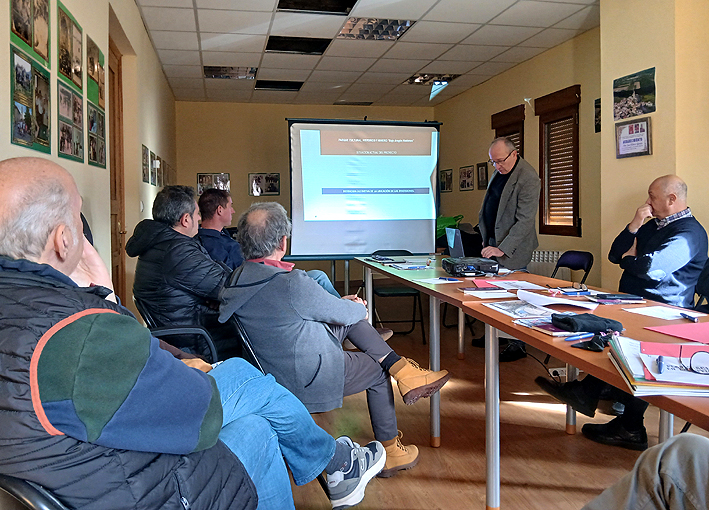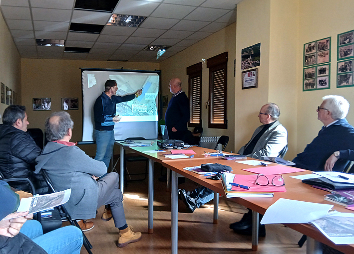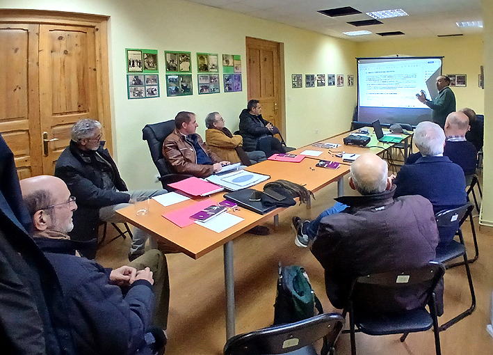 En un determinado momento, y tras la intervención de Luciano Vañó, la sesión fue interrumpida para acudir al almuerzo que se había servido en el restaurante de la propia localidad de Ircio. Allí fueron degustadas diversas especialidades gastronómicas de la zona, teniendo ocasión los presentes de departir amplia y agradablemente durante todo el desarrollo de la comida. Finalizada ésta y reanudada la sesión del Comité, tomó la palabra Antonio Gutiérrez, delegado de la citada Fundación del Patrimonio Ferroviario en Sevilla y miembro, también, de nuestro Comité, quien, acompañado de diferente material expositivo, explicó determinadas posibilidades concretas a verificar en un futuro inmediato. Posibilidades que fueron muy bien acogidas por todos y sobre las que se decidió explorar más a fondo los requisitos para poder hacer frente a su materialización.
